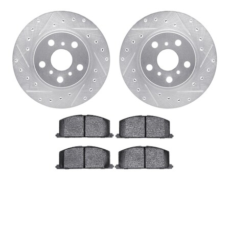 Dynamic Friction Company Front Brake Rotors Drilled and Slotted Silver with 5000 Advanced Brake Pads - 7502-76221