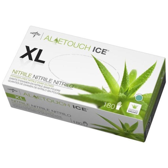 Medline Aloetouch Ice Nitrile Gloves - Aloetouch Ice Nitrile Exam Gloves, X-Large, Green, 180/Box