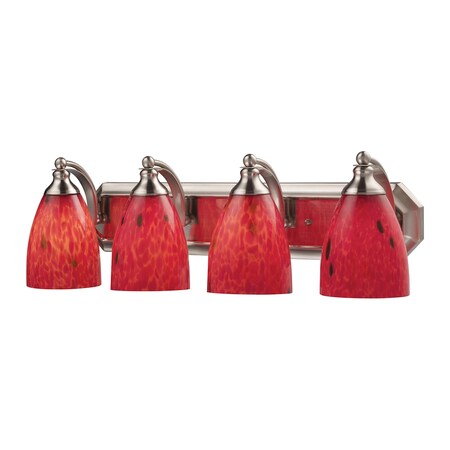 Elk 570-4N-FR 4-Light Vanity In Satin Nickel And Fire Red Glass