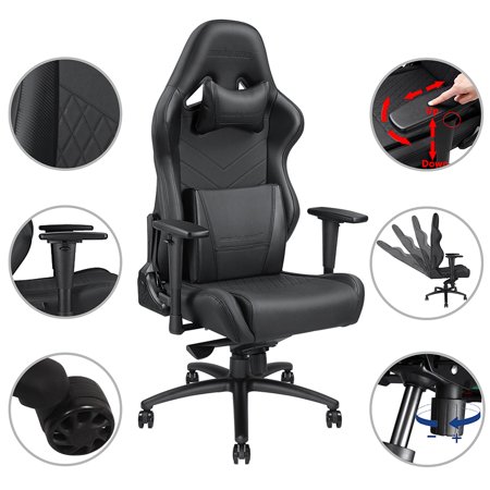 <ul> <li>Seat Size (WxD): 21.65" x 23.03"; Backrest Size (WxH): 23.82" x 34.17"; Adjustable Chair Height: 51.77" to 54.33"; Max. Weight Capacity: 400lbs (180kg)</li> <li>High density thicker foam, better resilience and not easily deformed; Soft PVC and carbon look vinyl texture, tear & wear resistant, scratch and heat resistance, 10000 times friction test for durability, more durable and hard-wearing than PU leather</li> </ul>