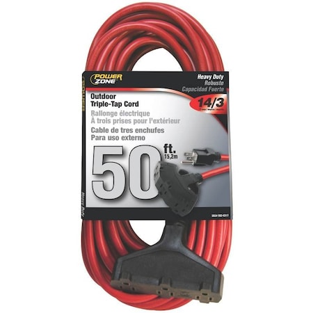 POWER ZONE OR614730/606730 Powerzone Ork606730 Sjtw Triple Tap Extension Cord, 14/3, Ft, 50-Feet