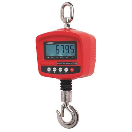 'Crane Scale, Capacity 132 lb., Wireless Remote Control, Scale Accuracy +/- 0.2 Percent, LCD Scale Display, Housing Material Plastic, Scale Graduations 20g/0.05 lb., Weighing Units g, lb., Overall Height 15-3/8 In., Temp. Range 32 Degrees to 104 Degrees F, Power Source 6V Rechargeable Battery, Finish Smooth, Includes Hook, Loop, Charger, Remote Controller, Power Adapter And User Guide, Basic Hook Material Steel, Hook Opening 1-3/64 In., Digital/Mechanical Digital, Overall Length 15-3/8 In.'