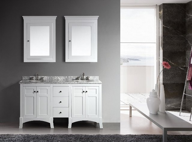 Eviva New York 60 inch White Double Sink Bathroom Vanity with White Carrara Countertop and Undermount Porcelain Sinks