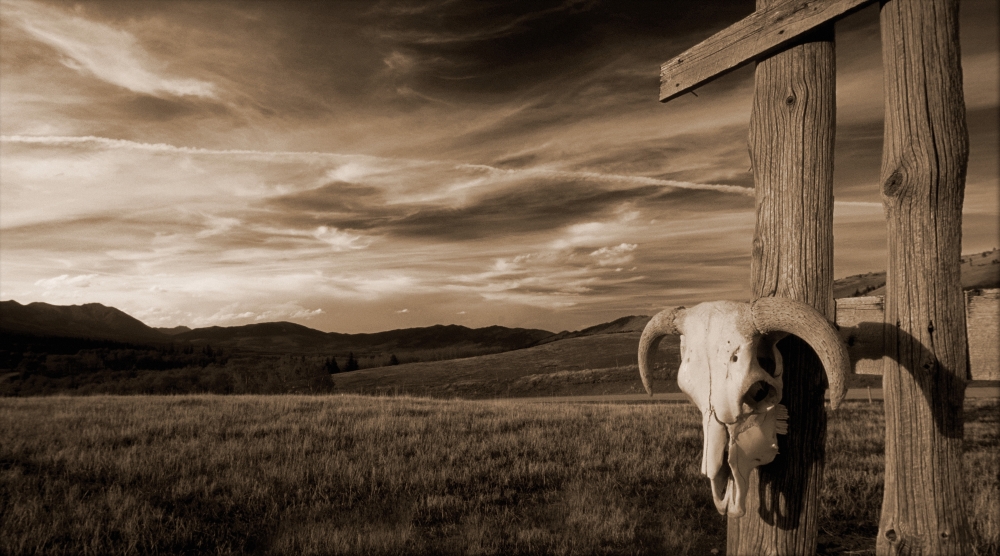 Posterazzi DPI1051742 Cattle Skull Hanging on Ranchers Fence Poster Print - 18 x 10 in.