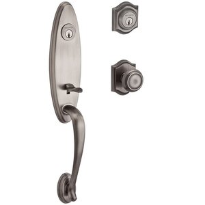 Baldwin Reserve DCCHEXTRATAR152 Double Cylinder Chesapeake Handleset with Traditional Knob and Traditional Arch Rose with 6AL Latch and Dual Strike Matte Antique Nickel Finish