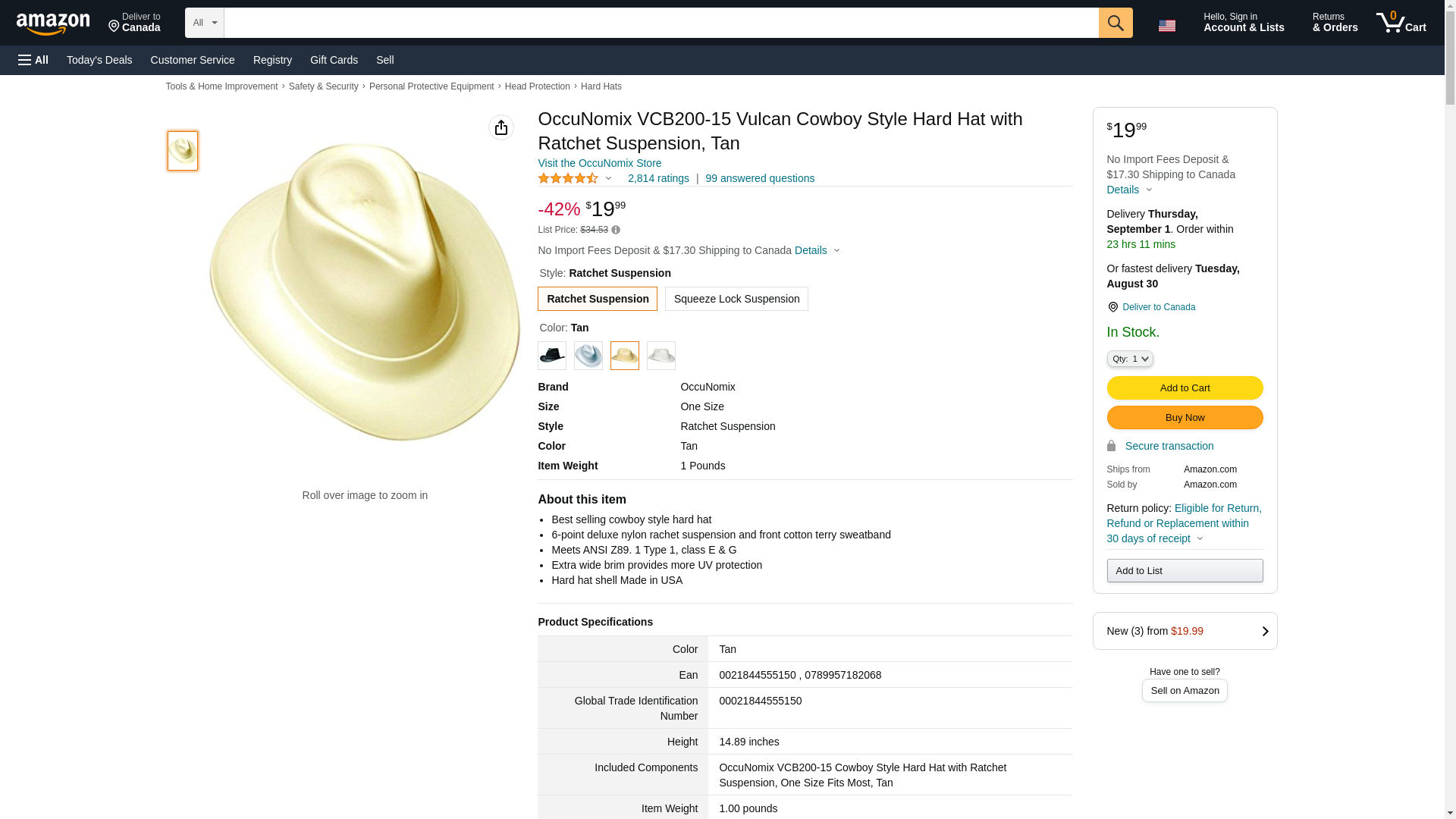 | Feature | Occunomix VCB200 Cowboy Style Hard Hat (Ratchet Suspension)-Tan |