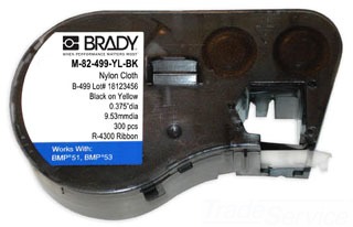 Brady M-82-499-YL-BK Nylon Cloth B-499 Black on Yellow Label Maker Cartridge, 3/8" Diameter, For BMP51/BMP53 Printers