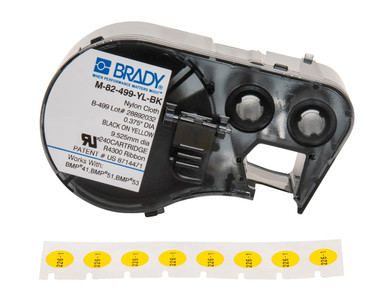 Brady Lab Id Label, Nylon Cloth, 0.375" Dia, 240/roll - M-82-499-YL-BK