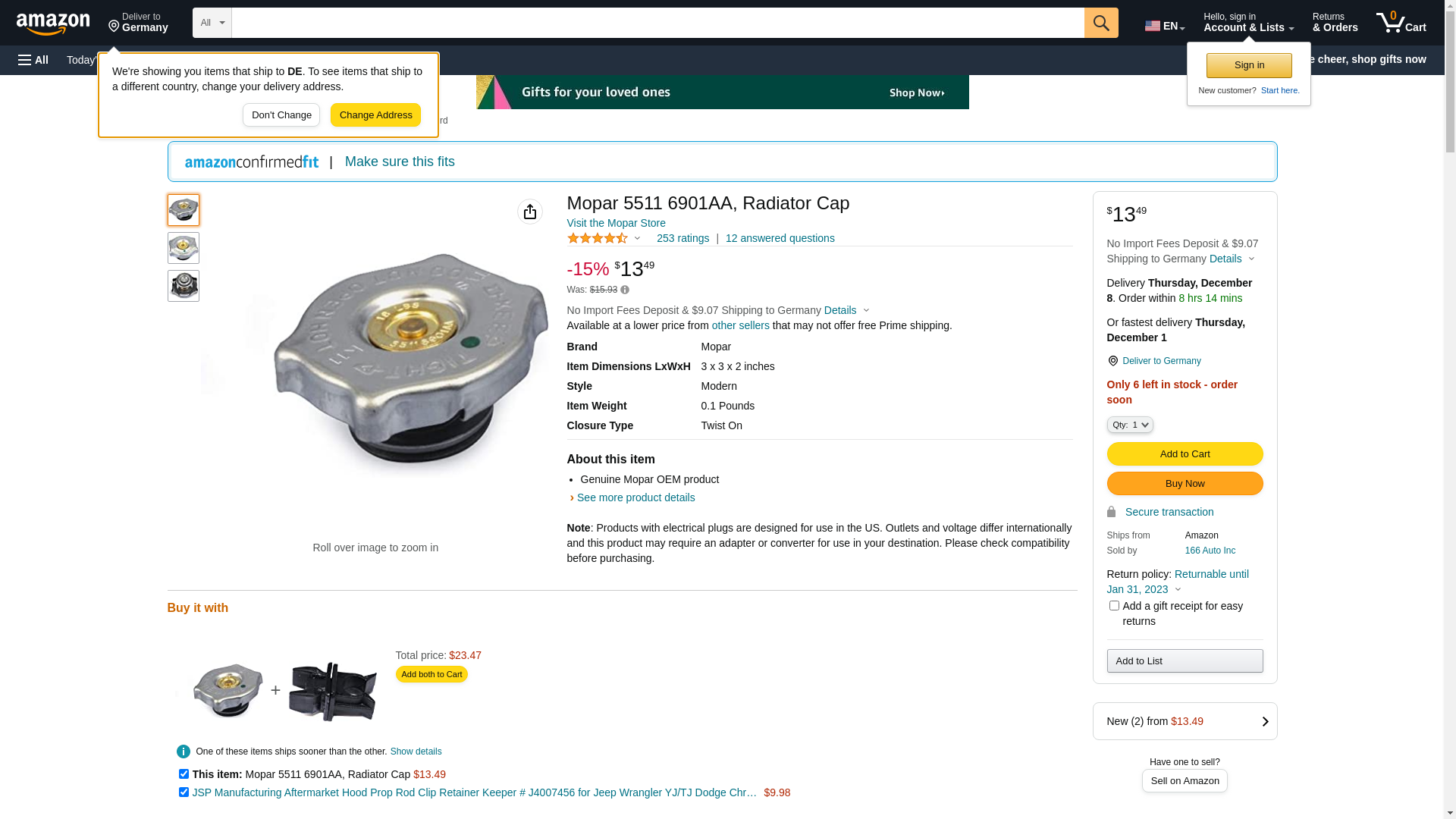 Mopar 5511 6901AA, Radiator Cap