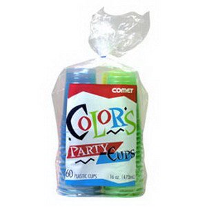 <ul> <li><br /><br /> <b>WNA Colors Party Cup Pink, Green, Blue, Yellow, 16 oz., 360/Case</b></li> <li>60-Count package of assorted colored plastic cups</li> <li> Holds 16 ounces</li> <li>made in the USA, hand wash for reuse</li> <li> Comet products provide classic drinkware for guests</li> <li>WNA offers a variety of cold beverage, wine and champagne glasses to fit the decor and needs of any event</li> <li> WNA is a leading designer and domestic manufacturer of an expansive line of plastic single-use tableware and packaging products</li> <li> Product Dimensions: 3.5 x 3.5 x 4.8 inches</li> <li>0.5 ounces</li> </ul>