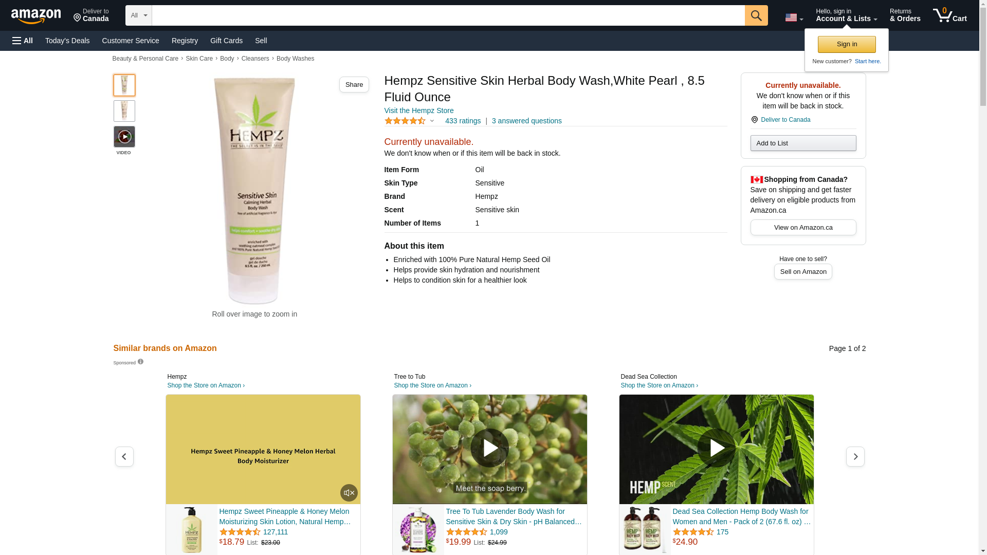 Hempz Sensitive Skin Herbal Body Wash,White Pearl , 8.5 Fluid Ounce: Maxedbuy.com