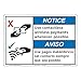 <p><strong>Word Message:</strong></p> <p>Use contactless wireless payments whenever possible.</p> <p><strong>Translation:</strong> </p> <p>Use pagos inalámbricos sin contacto siempre que sea posible.</p> <p><strong>Description:</strong></p> <p>Clarion Safety Systems brings you high quality Notice/Use Contactless signs (Item# F1376-) which are produced on premium plastic, aluminum, and polyester materials and are expertly designed to meet your safety sign needs.</p><p><strong>Material Information:</strong></p> <ul> <li><strong>Material</strong>: (ZA) Indoor/Outdoor Flexible Polyester</li> <li><strong>Base Materials</strong>: 3M .002 premium white polyester</li> <li><strong>Overlaminate</strong>: 3M .002 matte vinyl</li> <li><strong>Mounting Option</strong>: 3M Premium Structured Acrylic</li> <li><strong>Application</strong>: Indoor/Outdoor</li> <li><strong>MaxTemp</strong> (F): 225</li> <li><strong>MinTemp</strong> (F): -20</li> <li><strong>Chemical Resistance</strong>: Excellent</li> <li><strong>UV Resistance</strong>: Good</li> <li><strong>Outdoor durability</strong>: Excellent</li> <li><strong>Expected Life Indoor</strong>: Long term</li> <li><strong>Expected Life Outdoor</strong>: 3-5 year (expected outdoor life may vary due to climatic conditions)</li> </ul>