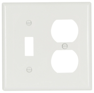 Eaton 5138W Standard Size Nylon Combination 2-Gang Toggle and Duplex Receptacle Wallplate, White