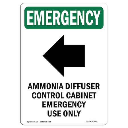OSHA EMERGENCY Sign, Ammonia W/ Symbol, 18in X 12in Rigid Plastic