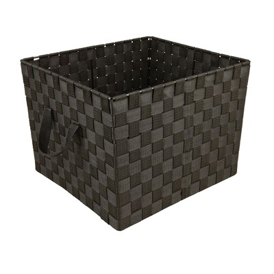 Simplify Large Woven Strap Tote | Decorative Storage Basket | 2 Handles | Organization | Closet | Bedroom | Bathroom | Nursery | Accessories | Toys | Gifts | 1 Pack | Black
