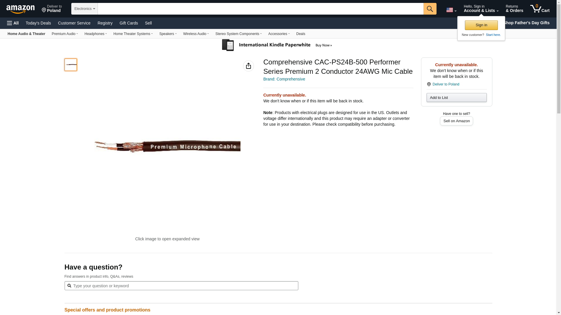 CAC-PS24B-500 Features: -Mic cable. -Flexible matte jacket. -Jacket material: PVC. -90% Bare copper spiral wrap. -RoHS compliant. -Bare copper construction. Product Type: -Optical Digital Audio Cables. Added Functionality: -Converter Cables. End Type: -Mixed Interconnects (Plug to Jack). Length of Cable: -26' and Up. Dimensions: Overall Length: -6000". Overall Product Weight: -13 lbs.