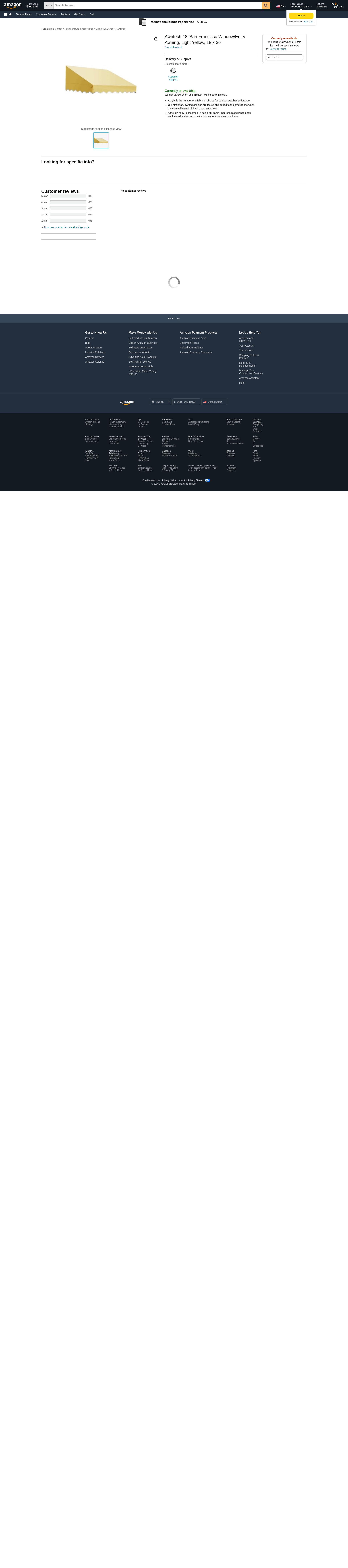 Awntech 18' San Francisco Window/Entry Awning, Light Yellow, 18 x 36