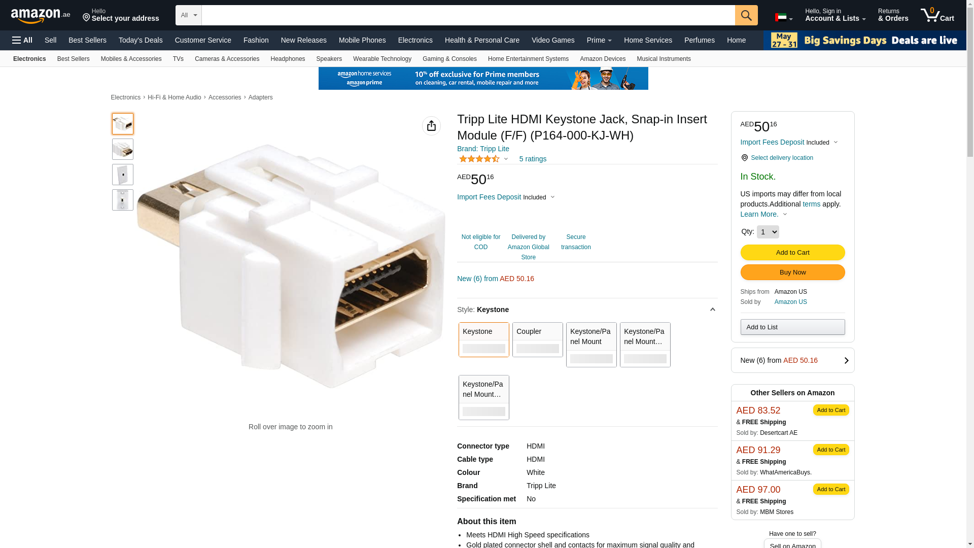 Female to female Routes HDMI(R) cabling Fits into any universal keystone-style face plate, outlet box or panel HDMI(R) High Speed compatible Gold-plated connector shell & contacts for maximum digital signal quality White durable ABS plastic housing RoHS compliant Lifetime product warranty
