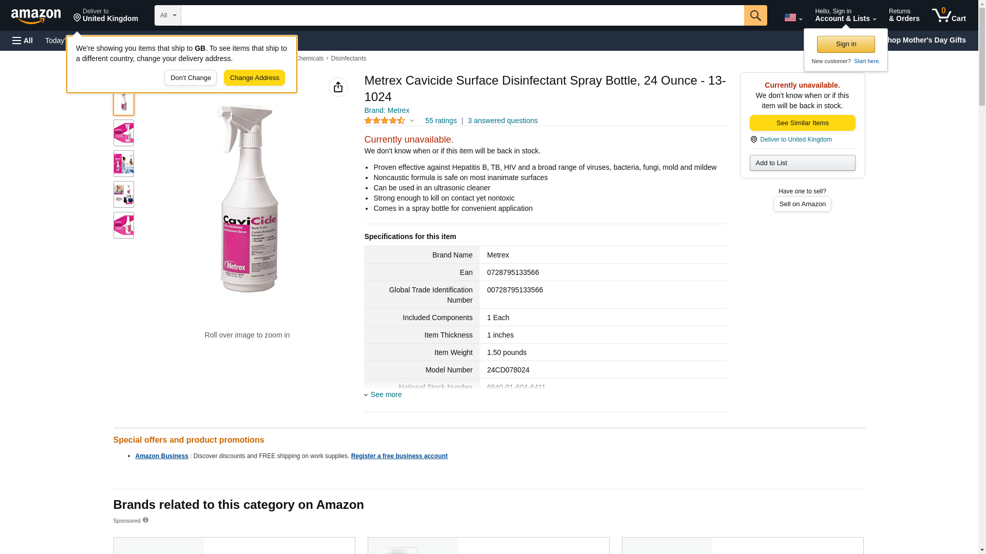Metrex 24CD078024 Cavicide Surface Disinfectant Spray Bottle, 24 Ounce