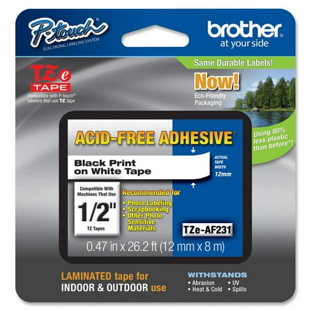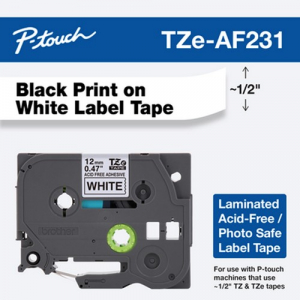 Brother International TZE-AF231 1 2" Acid Free Black on White