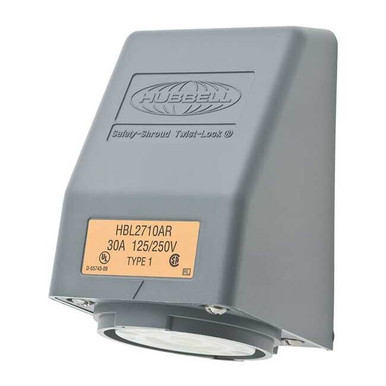 Install a Safety-Shroud Twist-Lock molded thermoplastic shroud to help eliminate any possible user contact with energized or partially connected plugs, and to keep blades from bending.<br /><br /> Item: Angle Locking Receptacle<br /> Shrouded / Non-Shrouded: Shrouded<br /> Wiring Style: Standard<br /> Mounting Type: Flush Mount<br /> Grade: Industrial<br /> Material: Stainless Steel/Melamine<br /> Amps: 30<br /> Voltage: 125/250VAC<br /> Number of Poles: 3<br /> Number of Wires: 4<br /> Color: Gray<br /> NEMA Configuration: L14-30R<br /> NEMA Rating: 4X, 12<br /> IP Rating: 20<br /> Phase: 1<br /> HP: 2.0<br /> Standards: UL/CSA<br /> Special Features: With Cover