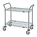 - Utility Cart, 42"W x 18"D x 37-1/2"H, (2) wire shelves, 1200 lb. capacity, (2) "U" shaped handles, open base, donut bumpers, (4) 5" polyurethane swivel casters (2 with brakes), gray epoxy finish, NSF
