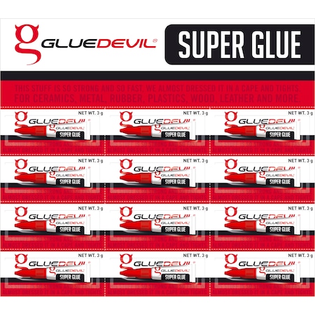 As an Amazon Associate, we earn from qualifying purchases. Super Glue Display Card 0.1 Oz/3G, PK288 Gluedevil . 50-SGLUE7500 Gallery Attributes Brand name, Manufacturer name, ManufacturerGluedevil Attribute00Ensure surfaces to be joined are clean, dry and grease-free. Apply GlueDevil Super Glue to one surface only. Join surfaces immediately and apply pressure for 30 seconds. Proven to bond metal, plastic, wood, ceramic, steel, aluminium, brass, leather and composites. Attribute010.10 oz x 288 pk Attribute0216.1417322834646 Attribute03Ethyl-2-cyanoacrylate, Hydroquinone Attribute04High performance instant adhesives for general-purpose assembly, industrial maintenance, repair and overhaul. Cyanoacrylate Adhesives bond a wide variety of substrates and can be easily used with both manual and automated dispensing equipment. These adhesives polymerise with moisture and cure in seconds at room temperature Attribute05Clear Attribute0611.0236220472441 Attribute07Sharp - pungent Attribute08South Africa AttributeKey00Application AttributeKey01Size AttributeKey02Length AttributeKey03Material AttributeKey04Features AttributeKey05Color AttributeKey06Width AttributeKey07Liquid AttributeKey08Country of Origin (subject to change) Category, CategoryL1Adhesives & Sealants CategoryL2Glues and Cements CategoryL3Instant Adhesives DimensionUnitinch GraingerSku, MPN50-SGLUE7500 Extra Product NameSuper Glue Display Card 0.1 Oz/3G, PK288 WeightUnitlbs atoms288 extendedLead2 extendedQty-2 moq, multiple, tierMinQty11 noShipToNo qtyInStock0 SKUG6990614 tierPrice1255.31 urlhttps://www.zoro.com/gluedevil-super-glue-display-card-01-oz3g-pk288-50-sglue7500/i/G6990614/ Distributor offers SellerSKUMOQIn stockMultiplePrices ZoroG6990614111 @ $255.31