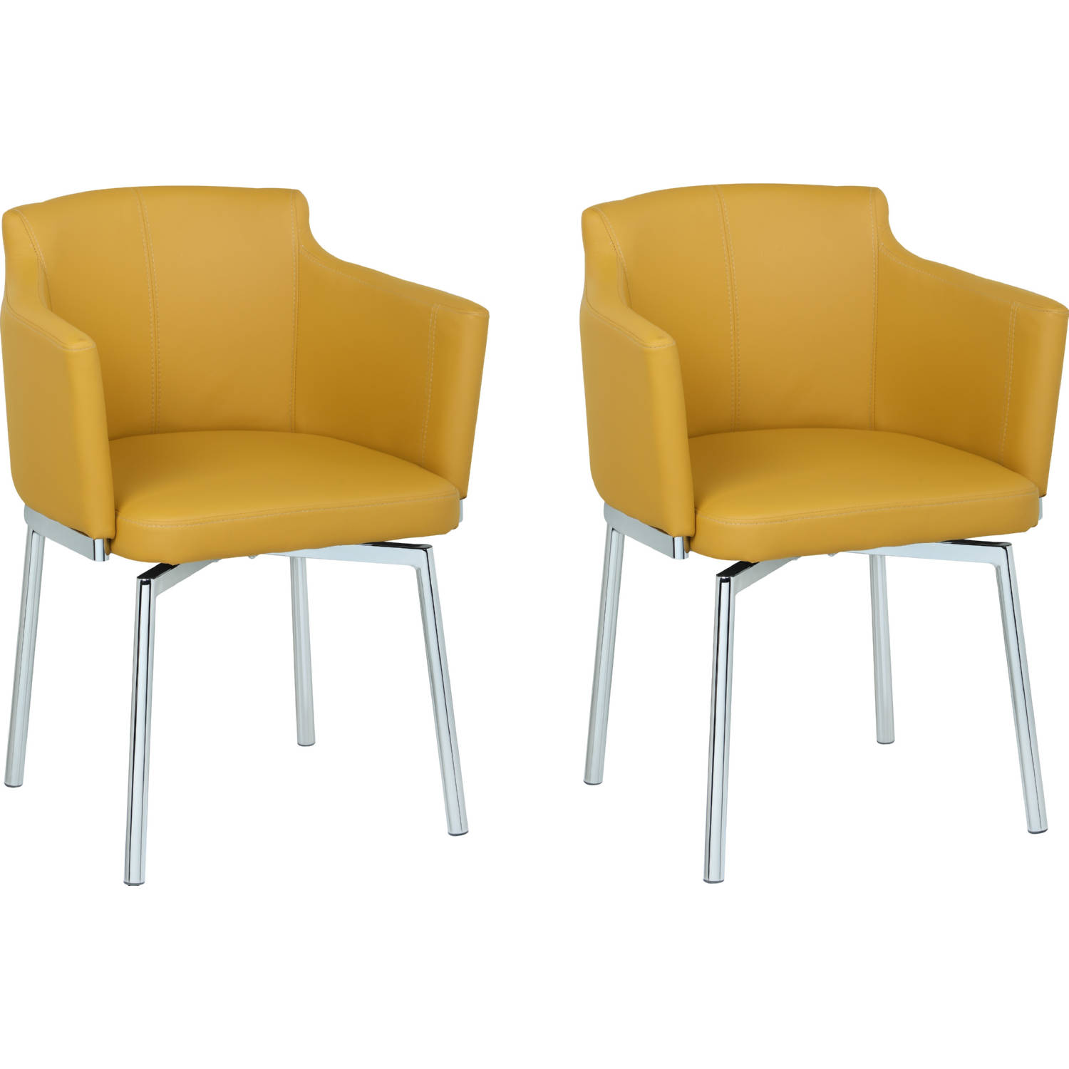 Update your spaces with this club-style bucket memory swivel side chair, which features a PU (faux leather) seat with a chrome frame and legs.<br/><br/>Features :<br/><br/>- Sold as a set of 2<br/>- Material: Steel and PU (Faux Leather)<br/>- Finish: Chrome, mustard PU<br/>- Black PU upholstery with double stitching<br/>- Memory swivel<br/>- Chrome base<br/>- CA fire retardant foam.<br/><br/>Specifications :<br/><br/>- Product Dimensions : 29.9"H x 22"W x 23.6"D<br/>- Product Weight : 58 lbs.