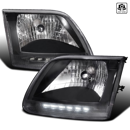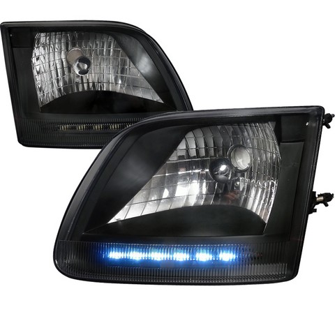 Spec-D Tuning Black Diamond Led Headlights Compatible with Ford F150 1997-2003, 1997-2002 Expedition, L+R Pair Head Light Lamp Assembly