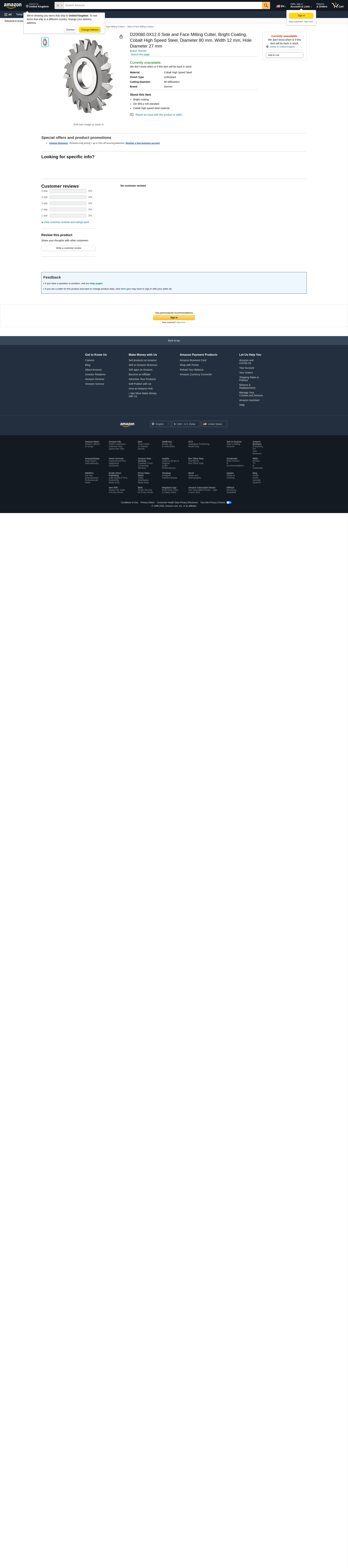 Dormer D20080.0X12.0 Side and Face Milling Cutter, Bright Coating, Cobalt High Speed Steel, Diameter 80 mm, Width 12 mm, Hole Diameter 27 mm