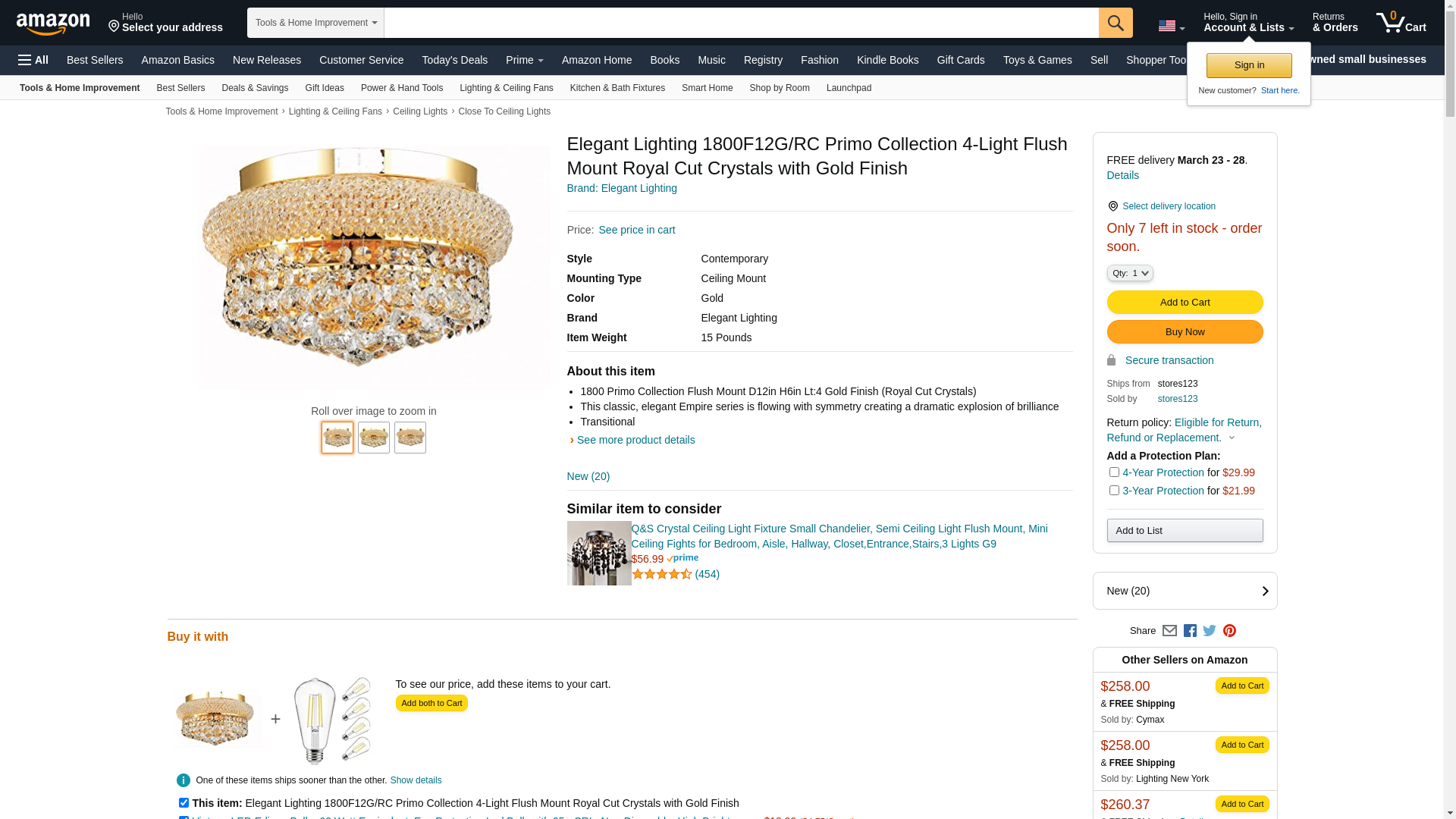 | Feature | 1800 Primo Collection Flush Mount D12in H6in Lt:4 Gold Finish (Royal Cut Crystals) |