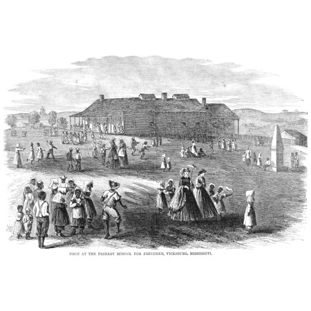 Stretched Canvas Art - Freedman'S School, 1866. /Nnoon At The Primary School For Freedmen At Vicksburg, Mississippi. Wood Engraving, American, 1866. - Large 24 x 36 inch Wall Art Decor Size.