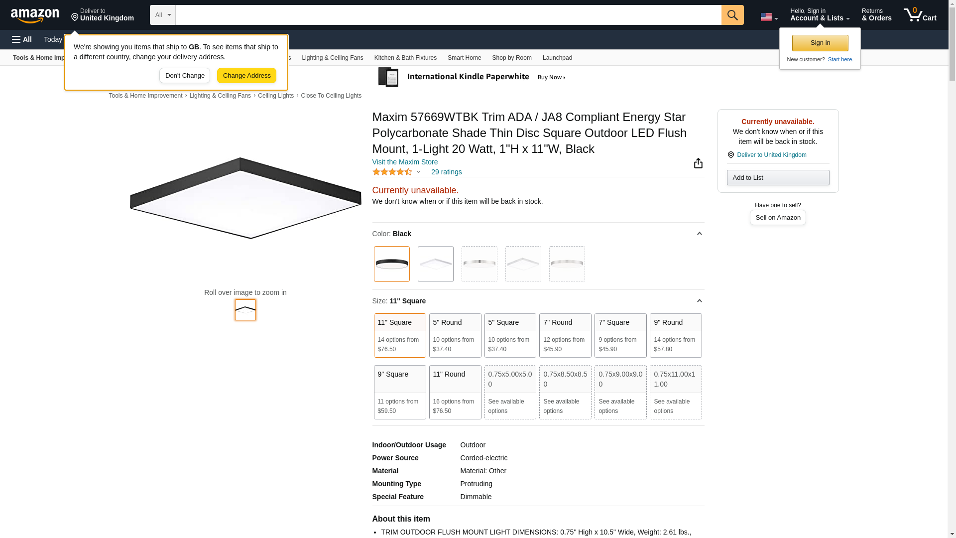 Add lighting over a shower or in your kitchen with this modern LED flushmount ceiling light. From Maxim and the Trim collection, this light features a white polycarbonate diffuser for excellent illumination. A black finish accents aluminum framework and brings a touch of contemporary flair to its simple, square silhouette. This light is an energy-efficient choice that's wet location rated for use in bathrooms or outdoor spaces.