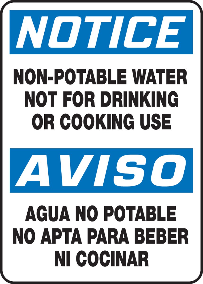 NON-POTABLE WATER NOT FOR DRINKING OR COOKING USE (BILINGUAL) (2 Pack)