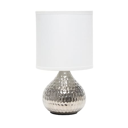 Simple Designs Hammered Silver Drip Mini Table Lamp, White
