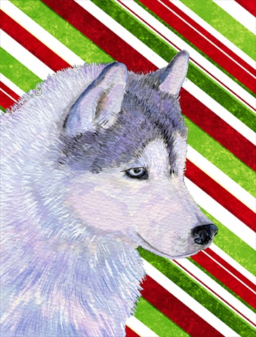 Caroline's Treasures SS4533CHF Siberian Husky Candy Cane Holiday Christmas Flag Canvas, Large, Multicolor