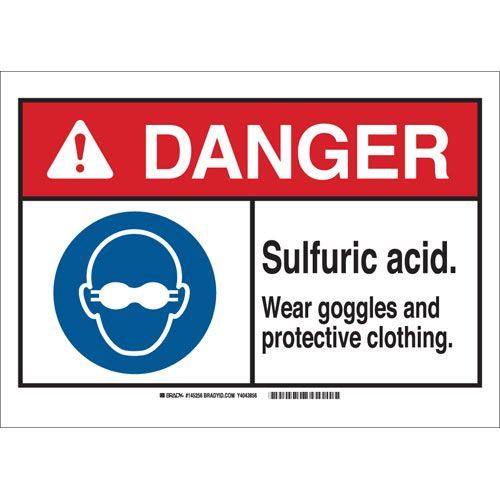Brady 145256 DANGER Sulfuric Acid. Wear Goggles And Protective Clothing. Sign - Self-sticking Polyester - Black/Blue/Red on White - 10 x 14