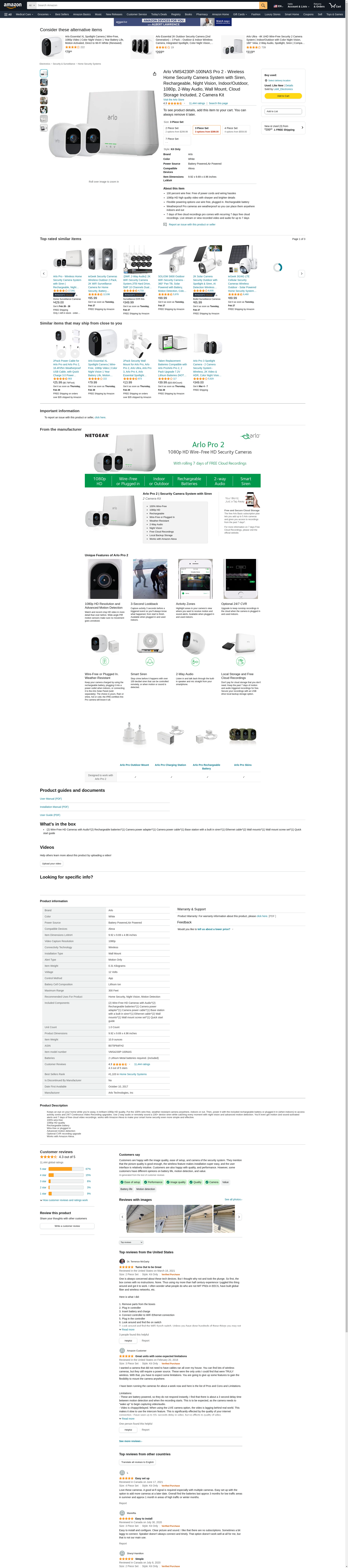 Arlo VMS4230P-100NAS Pro 2 - Wireless Home Security Camera System with Siren, Rechargeable, Night Vision, Indoor/Outdoor, 1080p, 2-Way Audio, Wall Mount, Cloud Storage Included, 2 Camera Kit