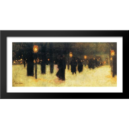 Across the Common on a Winter Evening 40x20 Large Black Wood Framed Print Art by Childe Hassam