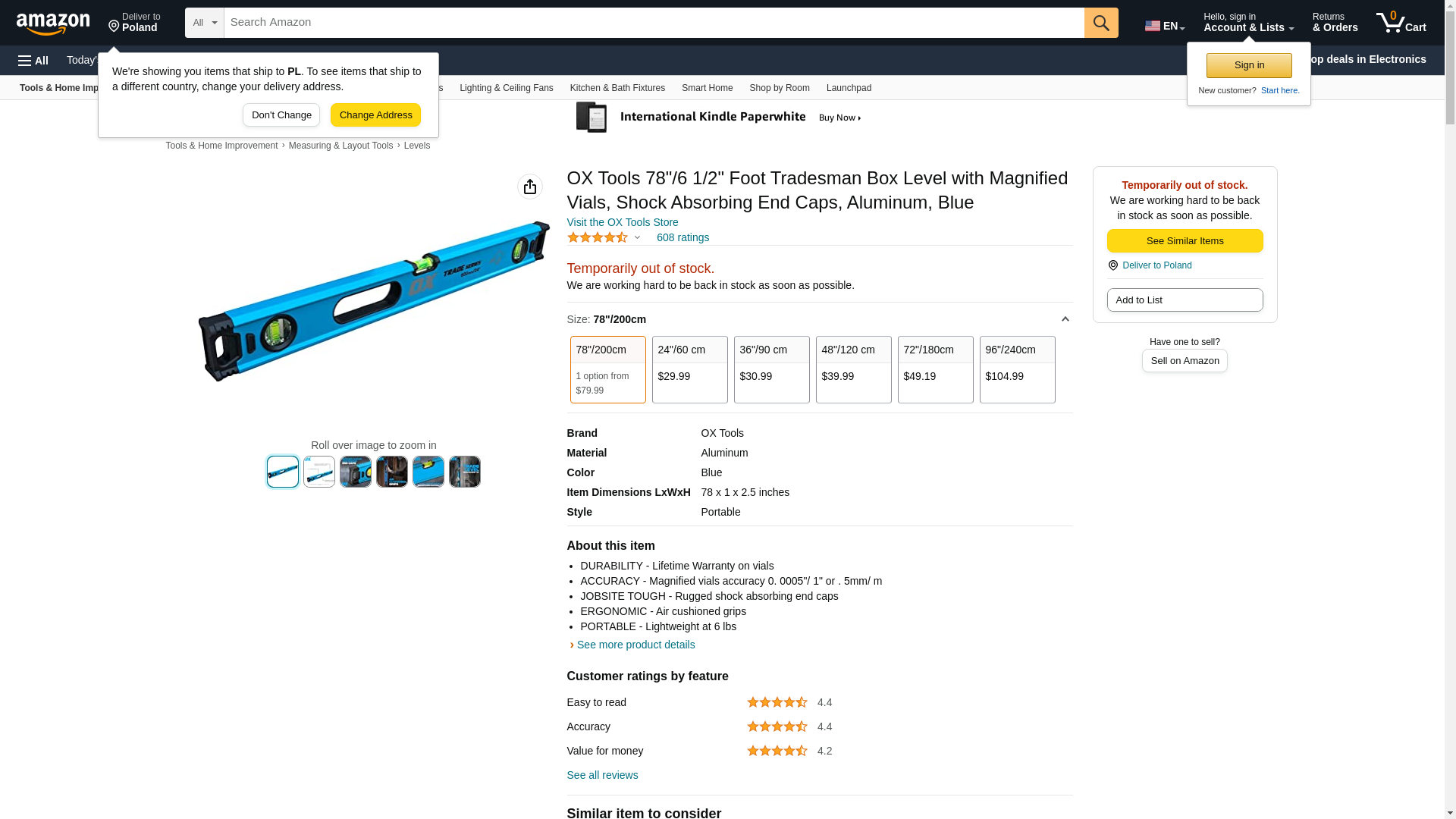 OX Tools Box Beam Level Non Magnetic 78" Inch Level Aluminum Construction, Shock Absorbing End Cap, Rubberized Soft Grip Thru Handle, Magnified vials OX-T024220 Trade Series