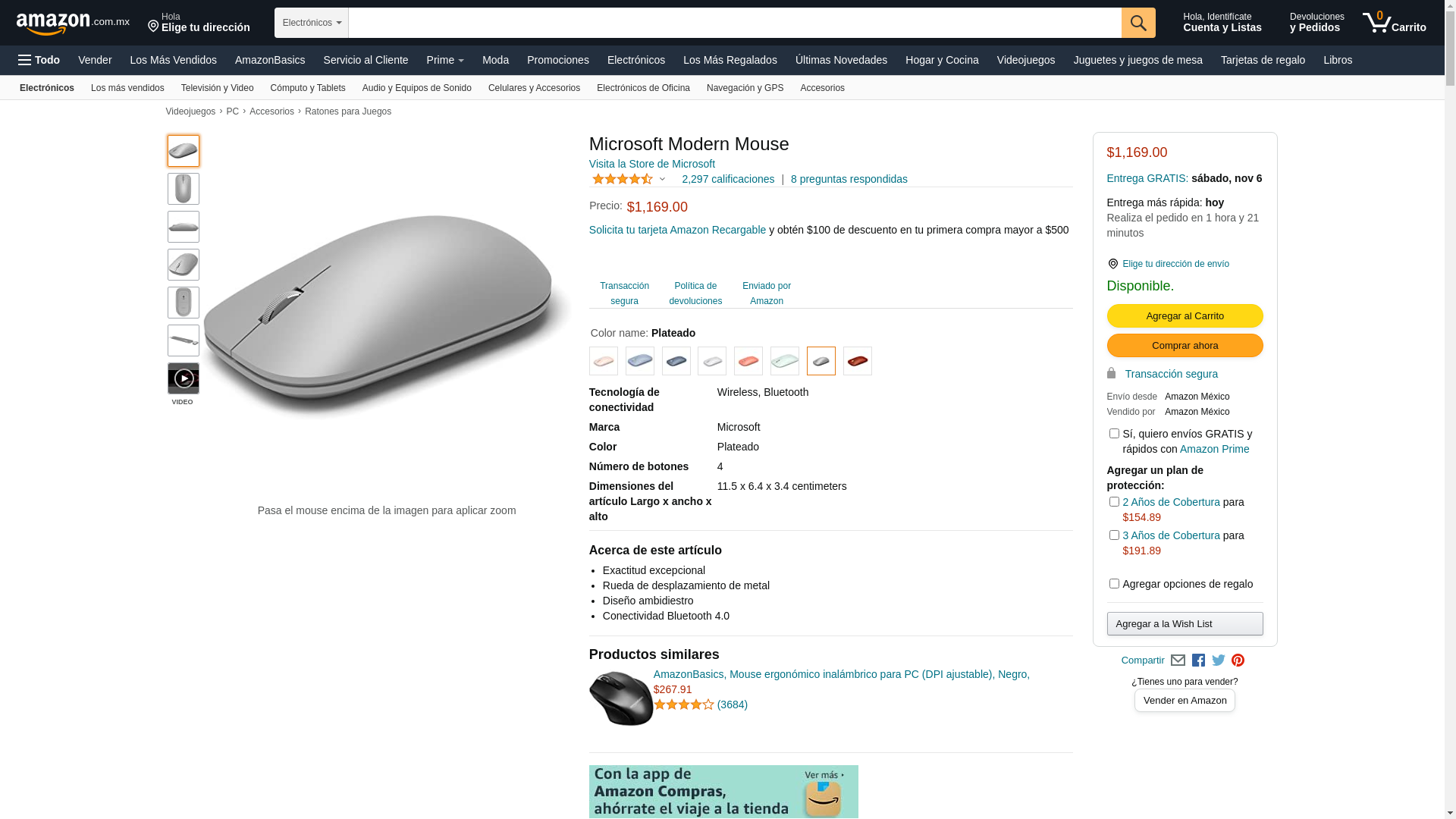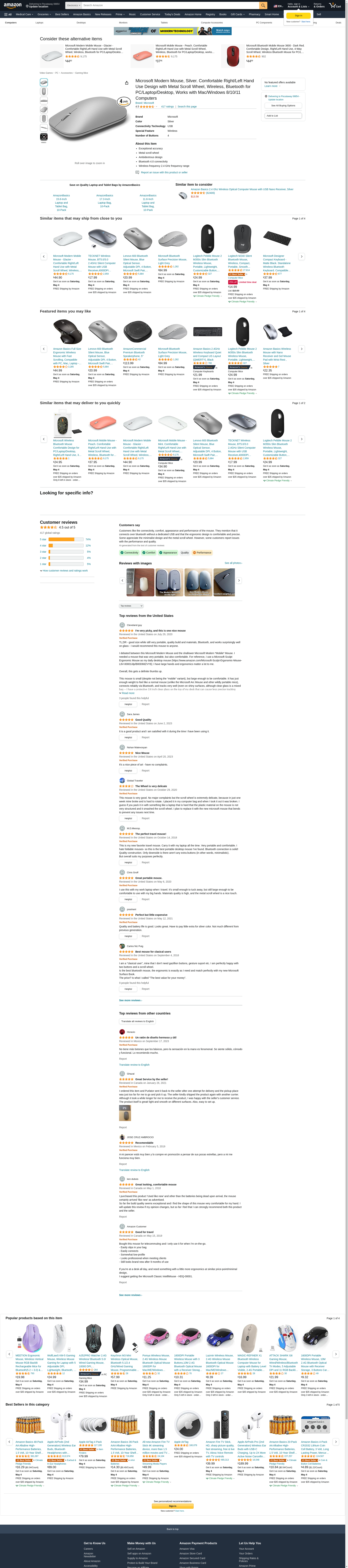 Microsoft Modern Mouse, Silver. Comfortable Right/Left Hand Use Design with Metal Scroll Wheel, Wireless, Bluetooth for PC/Laptop/Desktop, Works with Mac/Windows 8/10/11 Computers