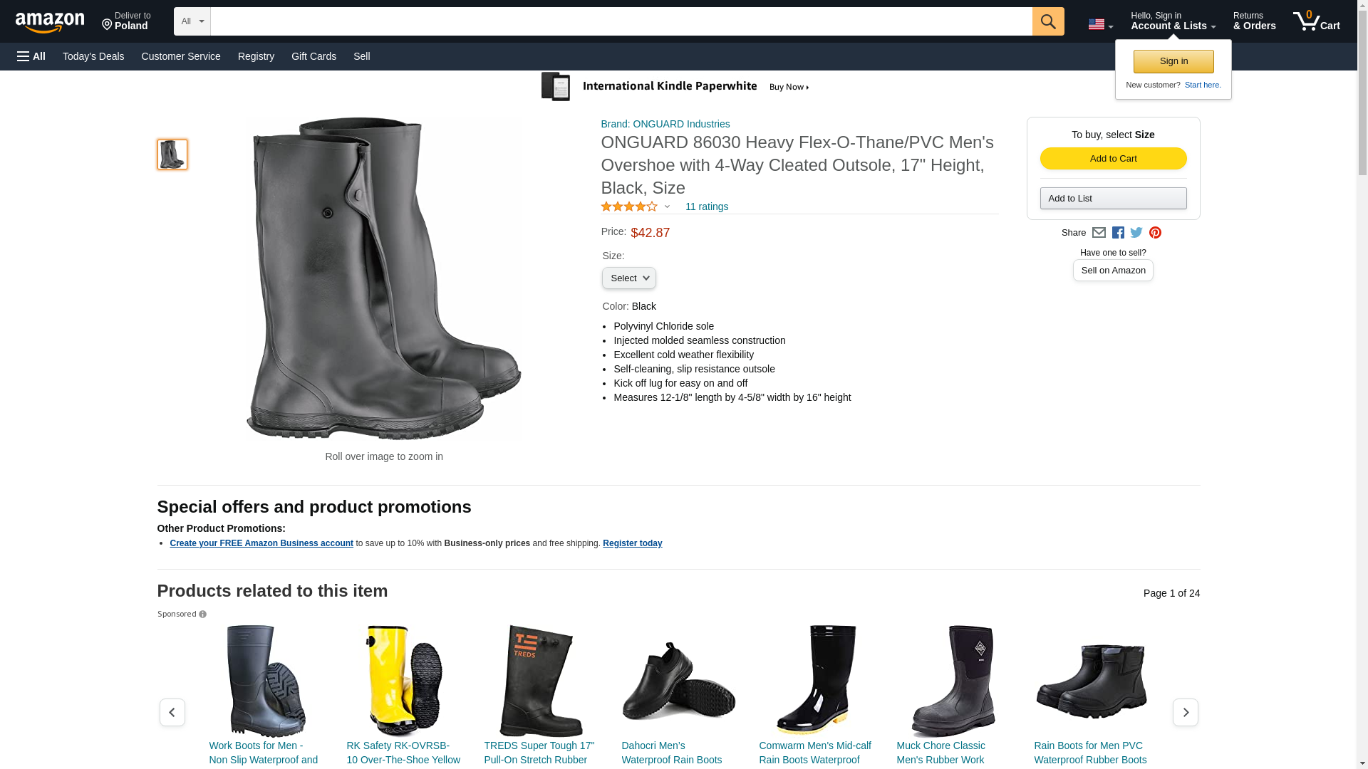 Onguard Men's, 17" Viking Black Overshoe W/4-Way Cleated Outsole, PVC, Size Large