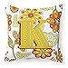 Carolines Treasures CJ2003-KPW1414 Letter K Floral Mustard And Green Canvas Fabric Decorative Pillow