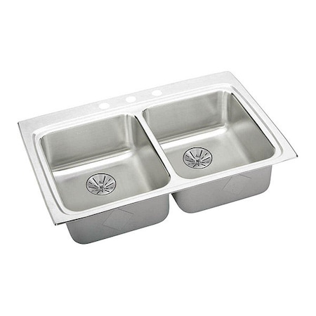 LRADQ332265PD3 18 Gauge Stainless Steel 33" x 22" x 6.5" Double Bowl Drop-in Kitchen Sink from ELKAY MFG COMPANY