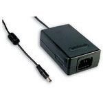 Mean Well Single Output Medical Desktop AC-DC Power Supply - MES30A and MES50A Single output medical desktop AC-DC power adapter with IEC601-1 medical approval, universal AC input and full output 3 to 48V safety approval. These desktop medical power supplies are fully enclosed within a plastic case, have a 3 pole IEC320-C14 AC inlet and a standard output plug (ID 2.1 x OD 5.5mm). have a 5 pin DIN plug. Universal AC input 3 pole AC inlet IEC320-C14 Class I power (with earth pin) Full output 3-48V safety approval Short circuit, overload, over voltage and over temperature protection Fixed switching frquency and regulation Topology: top switch circuit LED indication for POWER ON EMC compliance to EN55011(CISPR11) class B Harmonic current compliance to EN61000-3-2,3 Note MTBF: MIL-HDBK-217F (25°C) (MES30A Series) Approvals UL, CUL, TUV, CB Standards UL2601-1, IEC601-1, EN60601-1 approved Derate power above 40°C