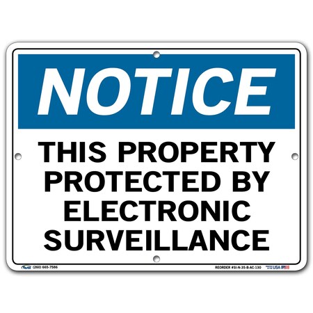 Vestil SI-N-35-B-AC-130 Notice Sign Aluminum Composite .130" Overall Size 12.5"W x 9.5"H This Property Protected by Electronic Surveillance , 9.5" Height, 12.5" Wide, 0.13" Length