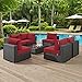 Sojourn Collection EEI-1883-CHC-RED-SET 7 PC Outdoor Patio Sectional Set with Powder Coated Aluminum Frame, Synthetic Rattan Weave Material and Sunbrella Fabric Upholstery in Canvas and Red Color