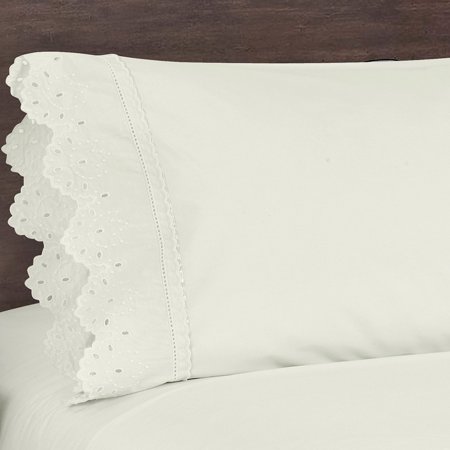 Pair timeless shabby chic design with comfort by adding our 100% cotton eyelet and ribbon 2-piece pillowcase set by Five Queens Court