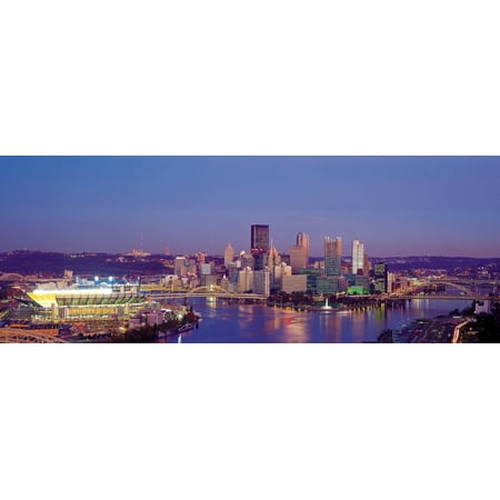 Panoramic Images Stretched Canvas Art - Pittsburgh, Pennsylvania, USA - Large 27 x 9 inch Wall Art Decor Size.