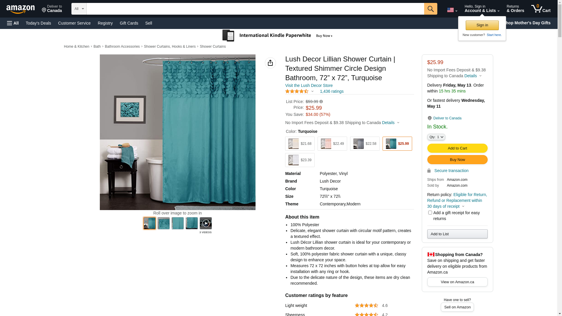 Lillian Turquoise Shower Curtain 72x72 - Lush Decor C11263Q13